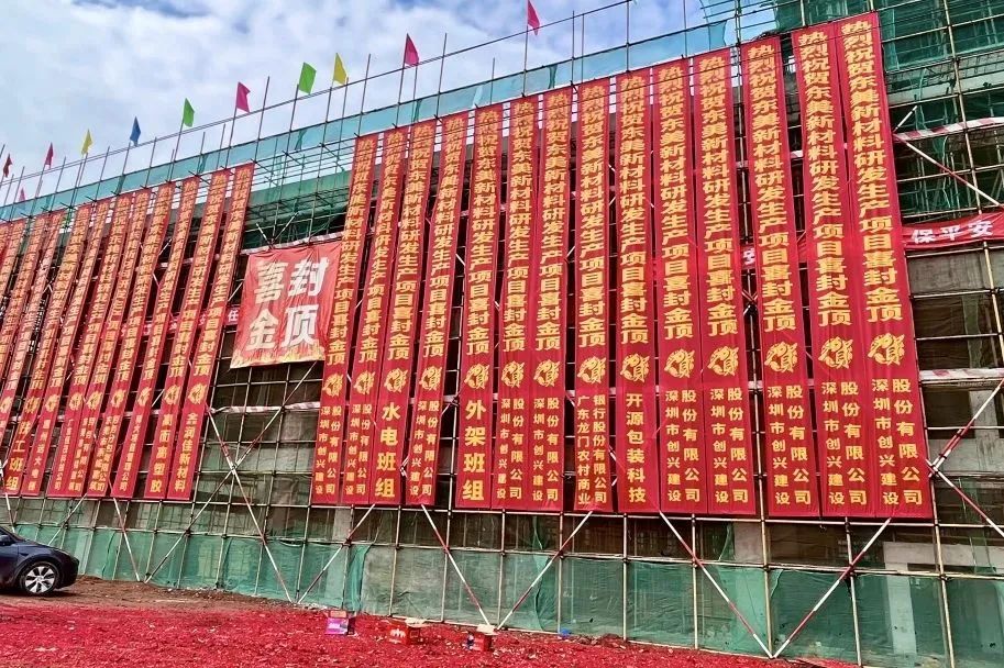 從一紙藍(lán)圖到喜封金頂,從黃泥土地到高樓大廈。 2024年1月10日,由深圳創(chuàng)興建設(shè)承建的惠州東美新材料生產(chǎn)研發(fā)項(xiàng)目,迎來(lái)歷史性的一刻! 用心,鑄就品質(zhì)! 實(shí)力,成就高度!
